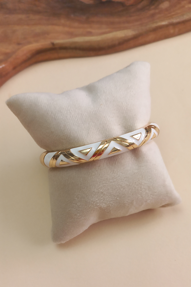 بنگل مینا کاری مدل مینیمال سفید و طلاییناموجود