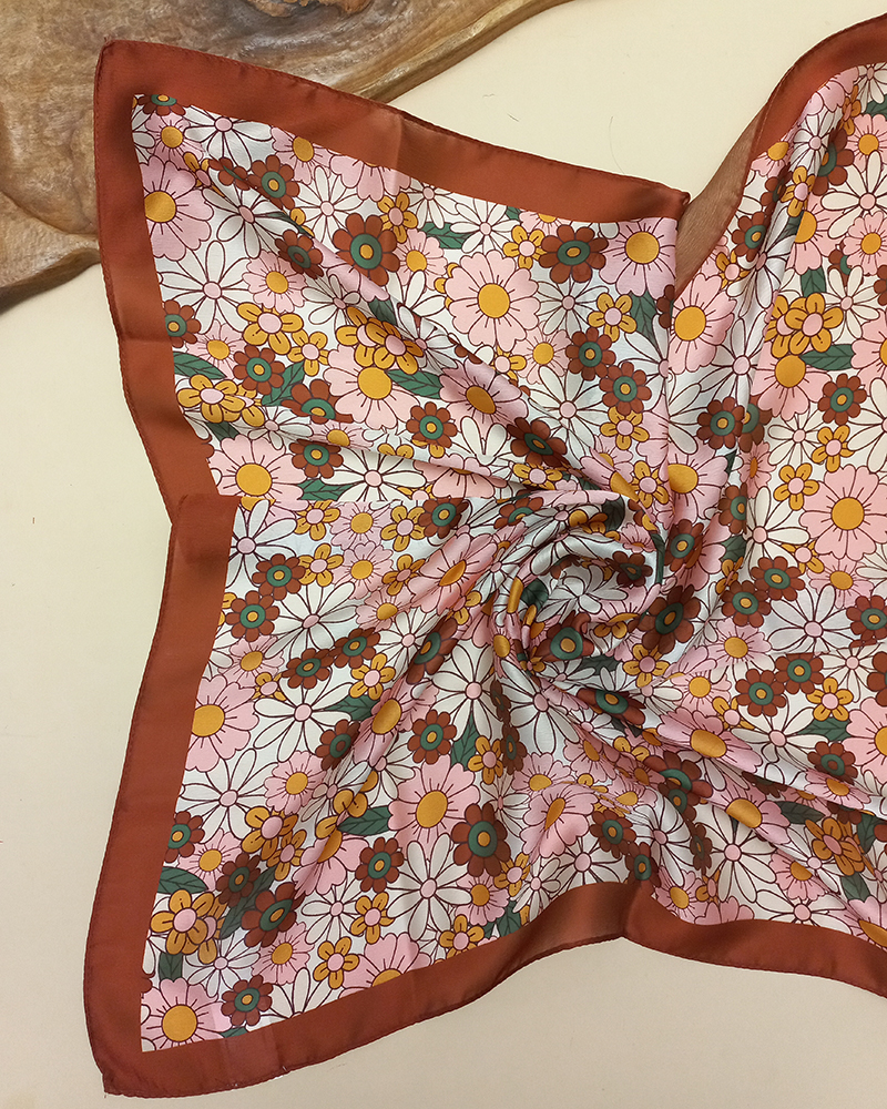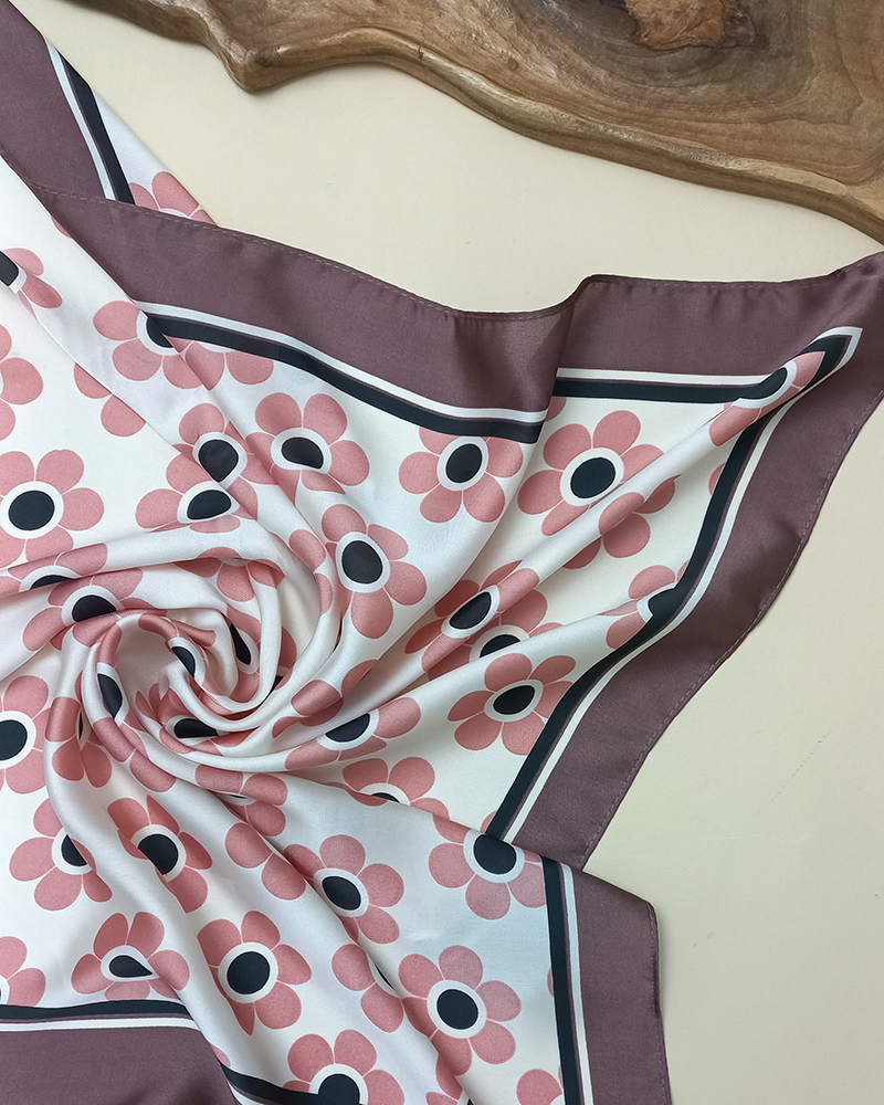 مینی اسکارف سیلک گلدار قهوه ایناموجود