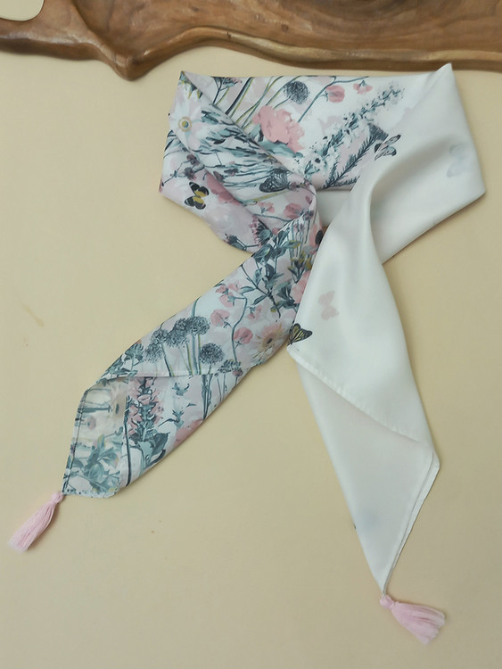 مینی اسکارف با طرح گل و پروانه